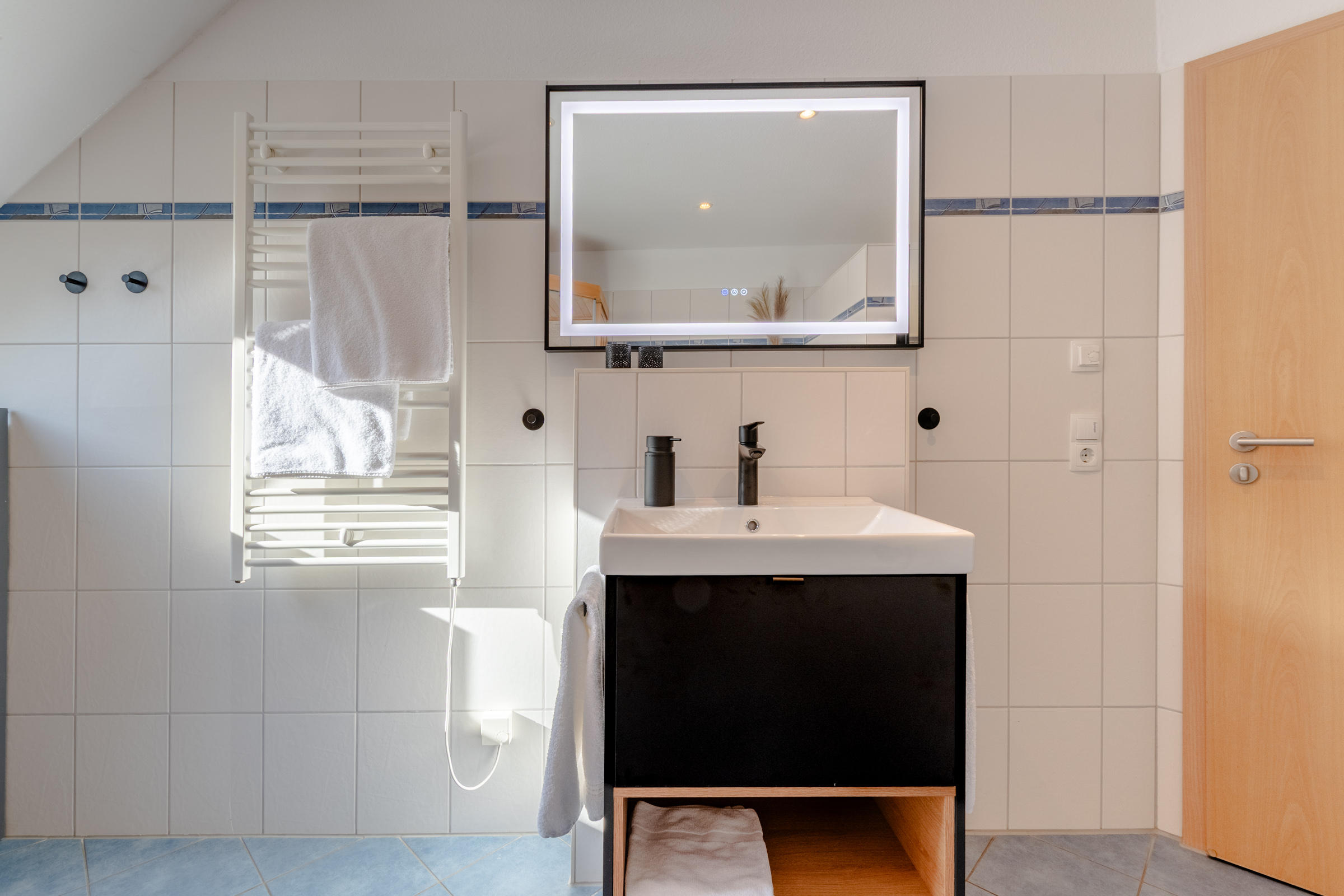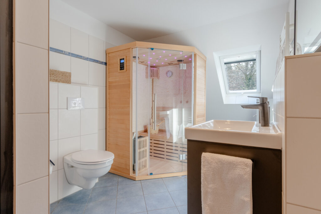 - Bad Sauna und bodengleicher Dusche